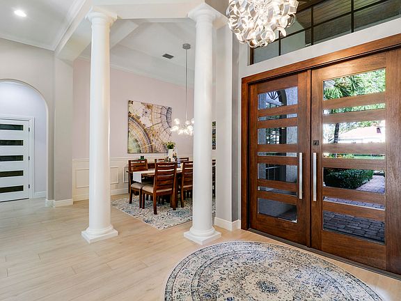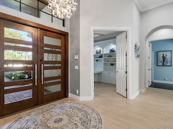 Luxury Living with Space to Spare - 6BR/6BA Pool Home with Office & Den. Step through custom designer entry doors into a home that exudes elegance and comfort. This expansive residence offers 6 bedrooms and 6 bathrooms in a thoughtfully designed 4-way split floor plan, complemented by a spacious den, dedicated office, formal living room, and inviting family room. Natural light fills the interior, highlighting the quality craftsmanship throughout. The chef's kitchen is a true centerpiece, featuring a gas cooktop, double ovens, warming drawer, beverage center, and generous quartz countertops -- ideal for entertaining. The primary suite is a private retreat, complete with a luxurious bathroom and direct access to the newly resurfaced patio. Enjoy the sparkling pool,... unwind in the heated spa or gather around the summer kitchen under the covered patio perfect for outdoor dining and relaxation. Additional highlights include impact glass throughout and a 2023 roof for peace of mind and long-term value.