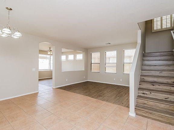 Put your personal touch on Southwestern desert living in this renovated, two-story, three-bedroom, two-and-a-half-bathroom rental home in sunny Mesa. Located in a peaceful, landscaped neighborhood, this charming home has an open floor plan with an eclectic mixture of tile and vinyl plank flooring. A two-car garage and a quaint breakfast nook flank the foyer. Inside, an adjacent dining room and living room face a spacious kitchen filled with modern stainless steel appliances, plenty of cabinets, a pantry, quartz countertops, and a massive peninsula for prep or casual entertaining. Central cooling/heating and ceiling fans keep the indoor air comfortable. Up the vinyl plank-covered stairs, three bedrooms beckon with a mixture of flush-mounted lighting and vibrant natural light. The main bedroom's en suite bathroom feels like a spa with its dual vanity sinks, huge mirrors, walk-in shower, and oversized bathtub. Outside, a covered patio and a fenced-in yard provide roomy, private outdoor space for lounging or socializing. Schedule a guided tour or a self-showing today.