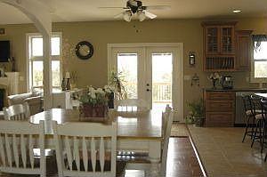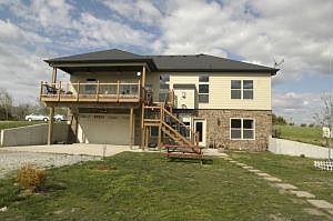 Kitchen w/big island, huge walk-in pantry, stainless appliances, tiled floor, formal dining or office, 1/2 bath off kitchen, hardwood in foyer & dining, main floor master w/tiled shower, big walk-in which opens to laundry. Lower level includes 2 bedrooms, family room, office area & storm room. Metal 56 x 30 barn w/2 horse stalls but setup for 3 and wash room w/drain. Fruit trees & 1/2 ac pond.