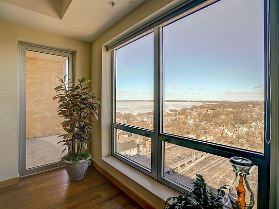 Showings begin 2/16. Lake views, downtown convenience, steps from the capitol square; your maintenance free condo awaits. Professional chef's kitchen complete with gas range, stainless steel appliances, cherry cabinets and quartz counter tops. Open floor plan with immaculate hardwood floors throughout lead you, seamlessly, between your studio bedroom, living room, large flex space which could be used as a formal dining room or office, and luxurious 5-piece Italian marble bathroom. Who says you can't have it all?