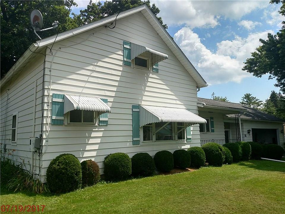 Shinglehouse, PA - RARE FIND About 3 1/2 acres in the Borough of Shinglehouse with your own apple orchard. Plenty of room to roam inside and out. There are two bedrooms and a full bath on first floor with an additional 3 rooms upstairs. Basement is dry with lots of room to entertain with a half bath. Enjoy your summers outside under the large maple trees or on the breezeway with sliding glass doors on the front and back. Blacktop driveway leading to the oversized 2 car garage with pull-down attic access. Laundry hook-ups on the main floor as well as the basement.