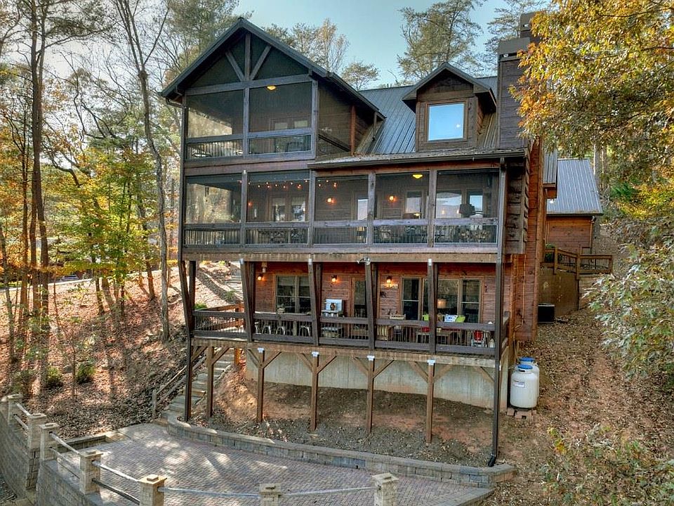 LOOKING FOR A GREAT MOUNTAIN VIEW ON A GOLF COURSE? Look no further. This nicely furnished 3 bedroom 3 and a half bath newer home has a rustic elegance to it. Deer and Turkey run through the backyard of this home. It has 2 indoor gas fireplaces and a wood outdoor fireplace on a screened in porch. Keep your cars covered in the 2 car garage with storage up top. It also has a small building below to keep a golf cart and yard tools or use it for more storage. Most furniture stays minus the Upstairs bedroom furniture and the Office Furniture.