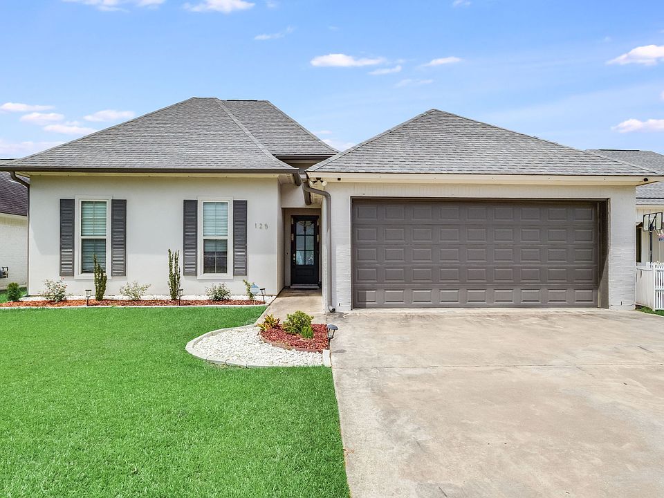 Beautiful & spacious 3 Bedrooms/2 full Baths located in an ideal location in South Lafayette, in the highly sought after Woodlands of Acadiana subdivision. The open & split floor plan offers high ceilings with crown molding, lots of natural light & tall windows in the living room, granite countertops, custom cabinets, laminate wood floors throughout, custom shower w/ Large Master Bedroom and walk in closet. Fenced and Landscaped yard. This community gives you access to a community pool, park w/ walking trails, and stocked fishing ponds.