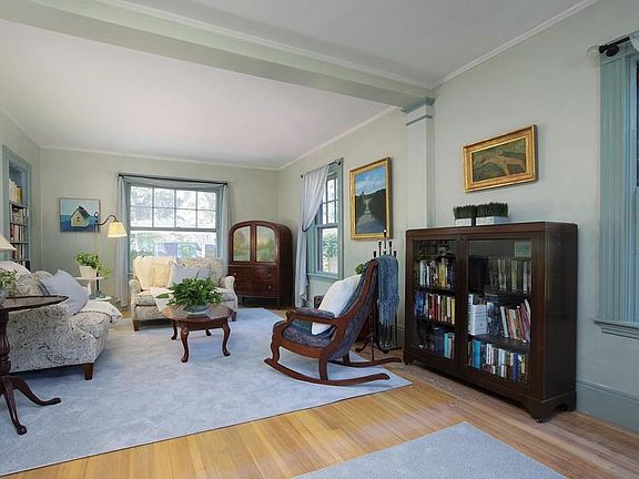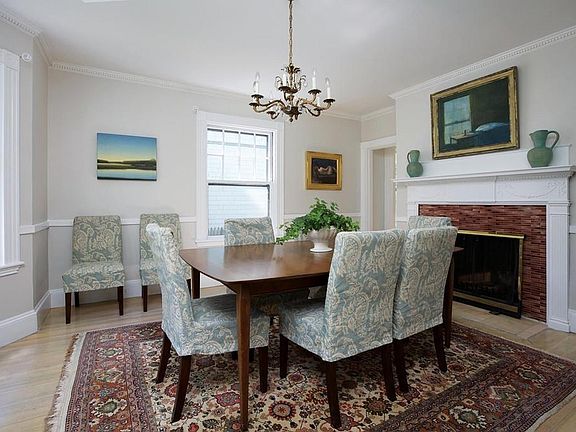 Circa 1920. Conveniently located just minutes from Newton Centre, this charming Victorian-style residence offers a floor plan designed for comfort and gracious entertaining. The main level features a spacious front-to-back living room with a high ceiling, deep moldings, and oversized windows offering bucolic views of both the front and back gardens. The dining room is enhanced with a pretty fireplace and a lovely carved mantel. The meticulously renovated 2016 kitchen (24' x 14') is appointed with stainless steel appliances, a center island, and ample room for gatherings. Completing this floor is a full bathroom. The second floor has four corner bedrooms, one with a fireplace, and a full bathroom. The third floor has a private office and a large storage area. The back garden with its beautiful pergola, nestled hammock, and generously-sized lawn is a wonderful haven. This property is set in a welcoming community close to the Bowen School, Newton Centre T station, restaurants, and shops.