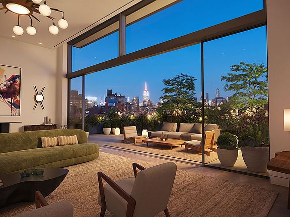 Introducing Penthouse East at 125 Perry Street – the most consequential apartment in Downtown Manhattan. Spread across three levels of living space totaling 7,700 square feet, with three separate and distinct outdoor terraces exceeding 2,800 square feet, it is a truly special home, effortlessly melding contemporary architecture with the building’s original character. Perfect indoor/outdoor connections showcase monumental views of the Midtown skyline, with glass-wrapped entertaining areas opening to oversized terraces.