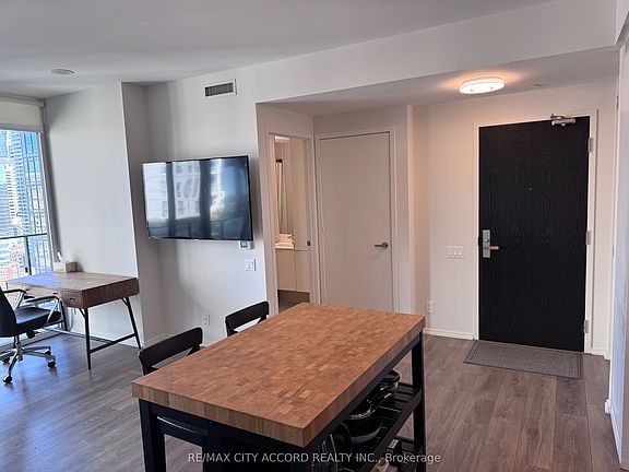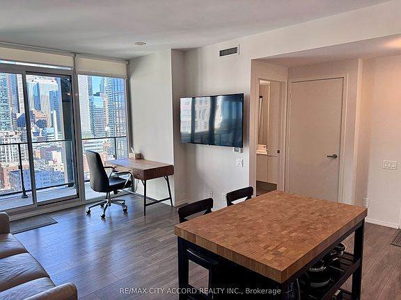 Welcome to this fully furnished 2-bedroom condo at Tableau Condos, located in the heart of downtown Toronto. Just steps from the Rogers Centre, CN Tower, fantastic restaurants, Queen Street shopping, TTC, and more. The unit boasts a large wrap-around balcony with stunning city skyline views, including the CN Tower. Floor-to-ceiling windows flood the space with natural light, enhancing the open feel. The kitchen features built-in appliances, quartz countertops, a matching quartz backsplash, and a spacious kitchen island, perfect for casual dining. Repainted and move-in ready, this condo offers an ideal balance of comfort and style with an unbeatable view of the city. Residents also have access to top-tier amenities, including a Billiard room, Movie Theatre, Gym, Conference Rooms, Guest Suites, Party room and an outdoor terrace with BBQ facilities. The building provides 24/7 concierge services and visitor parking for your guests. A must-see!