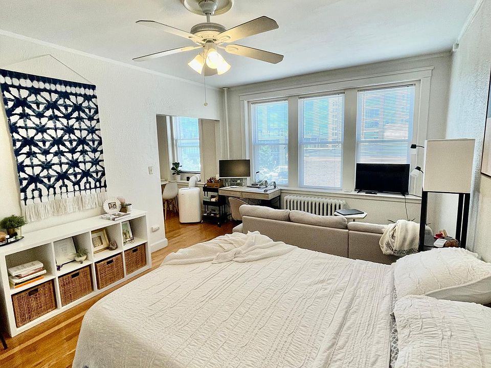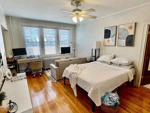 Upper floor studio in a professionally managed building steps to longwood medical, Fenway T stop, Backbay and South End. This home features hardwood floors throughout, large eat in kitchen, living space big enough for both sleeping and living areas, Gigantic walk in closet, and finally an updated bath with storage. heat and hot water included in the rent, buzzer system, new laundry facility in the building, onsite maintenance and management. Bike storage in the basement and off street parking available.