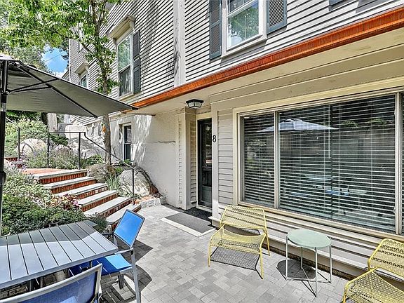 Offering tons of thoughtful recent updates throughout, this bright and modern south-facing garden level unit is situated in the heart of beautiful College Hill. Approach the unit via a large, private brick patio surrounded by gorgeous, established perennials. Inside, find an open-concept living room and eat-in kitchen, with stone counters and updated appliances. The first bedroom offers flexible live/work space, with a half bath and laundry room across the hall. The spacious primary bedroom has ample closet space, and an updated en suite bathroom. This incredible unit also features central AC, in-unit laundry, two deeded off-street parking spaces, and so many upgrades – including a new flooring, updated fixtures, and a new HVAC system. Located in the historic Nightingale building, this professionally managed HOA boasts tranquil, park-like grounds – moments away from Brown, RISD, Downtown, East Side restaurants and shops, and the train station.