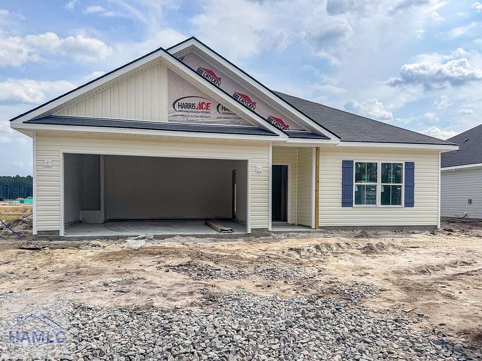 3-bedroom Vivian plan in Heritage Pointe! Just on the edge of Hinesville, close to new shopping & dining locations as well as local schools & Ft. Stewart! Upon entry to the Vivian plan find an entry foyer hall with two bedrooms & a hall bath with granite vanity counter adjacent. Garage & laundry access from the entry hallway as well! The home opens up to a family room with electric fireplace, dining area & kitchen. Find white cabinetry, granite counters & a clear view from the island in the kitchen. Step outside to the patio from the family room & enjoy the sodded backyard! The primary suite is located just off the family room. A vaulted ceiling greets you as you enter the primary bedroom featuring a walk-in closet. The private bath includes a dual vanity with granite counter, soaking tub & separate shower. Estimated completion December 2025.