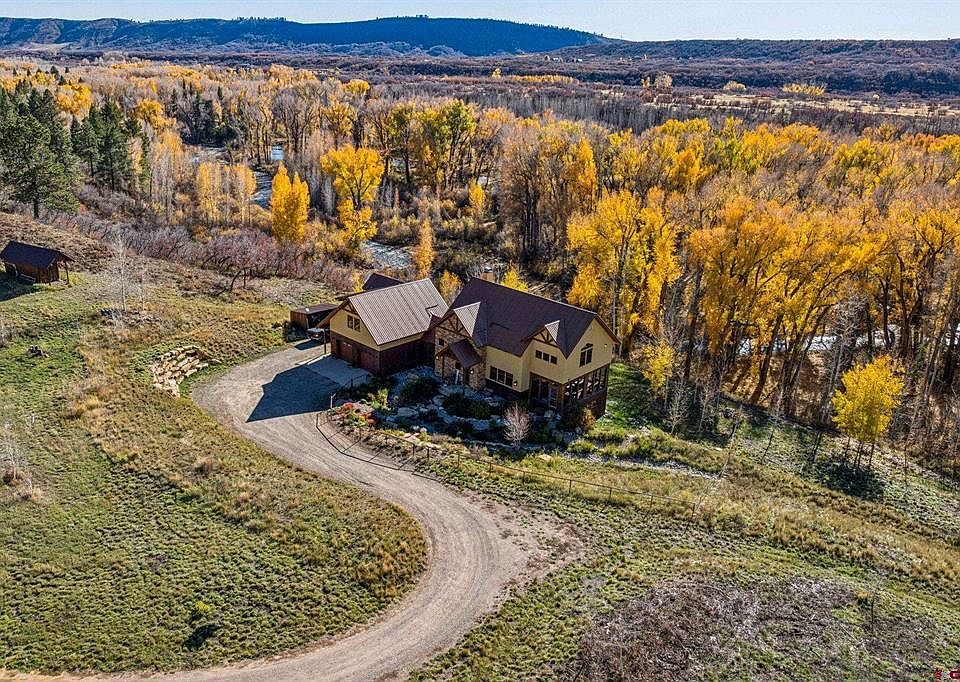 La Plata River Ranch Welcome to La Plata River Ranch, a private mountain retreat set on 39.9 acres along both sides of the La Plata River, just 20 minutes from the heart of historic Durango. Offering year-round access, direct National Forest adjacency, and unmatched fly fishing opportunities right outside your door, this is a rare blend of wilderness and refined living. Crafted in a Mountain Modern style, the home spans 4,686 square feet across three levels, designed to embrace natural light, open space, and breathtaking views. The main floor features an open-concept living area with vaulted ceilings, a wood-burning fireplace, and oversized windows that frame the surrounding peaks and seasonal foliage. The kitchen combines custom wood cabinetry with high-end appliances and a generous island that anchors the space for gathering and entertaining. Just off the dining area, a fully enclosed, four-season porch with a gas fireplace and propane heater invites year-round enjoyment. Upstairs, the primary suite is a true retreat — complete with its own fireplace, a soaking tub positioned to take in the views, a private laundry area, large walk-in closet, and a lofted office space overlooking the great room and forest beyond. Downstairs, the walk-out level offers two additional bedrooms, two full bathrooms, and a large game room that doubles as a bunk room — with four built-in bunk beds and a custom wet bar, it’s designed to welcome both quiet weekends and lively family gatherings. This level opens directly to the backyard and river’s edge, making outdoor adventures seamless. For guests, caretakers, or income potential, a fully detached 1-bedroom / 1-bathroom apartment sits above the attached two-car garage. Complete with its own kitchen, living area, and private deck overlooking the river, it’s an ideal space for extended stays or flexible living. Additional property features include: -A detached shop with two oversized roll-up doors, concrete floors, and power -A lean-to structure for wood and equipment storage -An off-grid solar system with backup generator, and a grid-tie currently in progress, offering the choice of energy independence or traditional power -Mature trees, usable acreage, private trails, and gated access Whether you're fly fishing steps from your porch, hiking directly into the National Forest, or relaxing fireside in the enclosed porch as the sun sets over the canyon, La Plata River Ranch offers a lifestyle defined by freedom, privacy, and natural beauty. It’s more than a home — it’s a legacy property where modern comfort meets Colorado wilderness.
