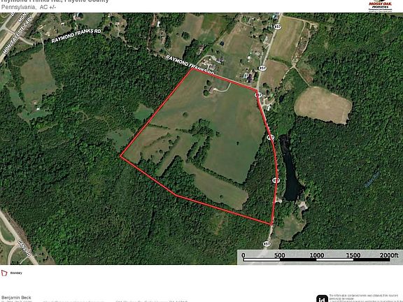 Perfectly situated at the corner of Route 857 and Raymond Franks Road, just minutes from Interstate 43 and Route 119, this property offers easy access to Uniontown, Morgantown, Pittsburgh, and beyond. Combining convenience with privacy, it features sweeping vistas of open fields and wooded draws, creating a truly one-of-a-kind setting—ideal for a private residence, country retreat, or recreational homestead.