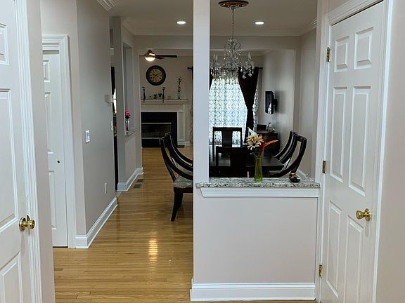 Renovated 3-bedroom, 2.5-bathroom townhome boasting an open floor plan and hardwood floors throughout the first and second levels. The spacious foyer features a grand chandelier, complemented by another elegant fixture in the dining room. Each bedroom and living room is equipped with ceiling fans for added comfort.