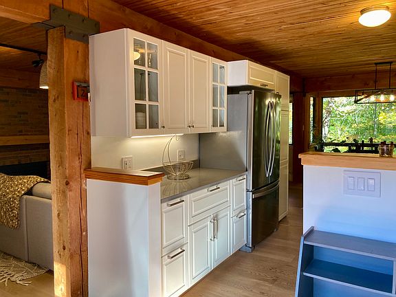 Cozy wood stovePrivate covered porchWood floorsLarge primary bedroomAmple closet spacePrivate patioUpdated kitchen