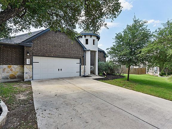 OPEN HOUSE SUN NOV 9 1-3. DON'T SETTLE FOR A TINY LOT WHERE YOU CAN TOUCH YOUR NEXT DOOR NEIGHBORS! Enjoy this huge, cul-de-sac located home with a GIANT back yard, no back neighbors and plenty of space to roam. And, ONE OF THE LOWEST PRICE PSF FOR 4 BDRM HOME IN LEANDER! Beautifully designed home offers the best of both comfort and lifestyle with a layout that lives like a one-story—3 bdrms & 3 full baths on the main floor, plus a private upstairs suite with its own bath. The unique brick, stone and stucco exterior adds curb appeal, while the oversized backyard with mature trees, stone wall, no rear neighbors creates a private retreat. A welcoming foyer w/custom bench & hooks, leading to an open floor plan filled with natural light. The spacious living room features a cozy fireplace and flows into a dream kitchen with a huge center island, miles of granite counter space, tons of 42” cabinets, pot and pan drawers, custom cutlery stack, and double built-in ovens—perfect for everyday living or entertaining. The formal dining room can flex as a second living area or office to suit your family's needs. The primary bedroom suite is a true retreat with a spa-like bath, soaking tub, separate shower, dual marble top vanities with ample drawer storage, and a large walk-in closet. Secondary bedrooms are generously sized with great closet space and each with its own private bathroom. Step outside to an extended covered porch, a built-in outdoor kitchen with grill and fridge, plus a cozy firepit area—ideal for dining under the stars and enjoying sunset views. Wood-look tile in main areas, carpeted bdrms (seller open to a credit to replace carpet), utility sink in laundry, water softener loop, and a 2.5-car garage. All this just a short walk to the exensive Larkspur community amenities including multiple pools, playgrounds and parks! Community elementary school within walking/biking distance. Easy access to 183 and 29 with shopping, restaurants and amenities nearby.