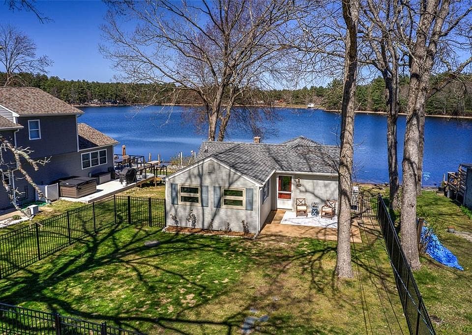 Completely renovated, this Waterfront Cottage is move-in ready. Located on Johnson's Pond at the water's edge of a quiet street, this home is a dream come true. From the attractive front deck, step into a bright, welcoming floor plan. The new kitchen offers stone countertops, a farmhouse sink, tile backsplash, stainless steel appliances, and a center island for casual dining. A hardwood sunroom overlooking the water provides the perfect spot for after-dinner relaxing or entertaining. Walkout access to the rear lawn provides picturesque views of sparkling water; stone steps will lead you directly to the water's edge. The home's two bedrooms enjoy breezes off the pond through windows on two sides. A full bath provides a dual-sink vanity and stacked laundry. A roomy basement adds bonus storage. Bring your boat, kayaks and fishing gear! Be ready to enjoy spectacular sunsets and life on the water.