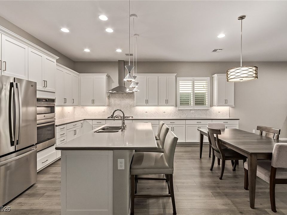You have to see this home it is beautiful! It is a Richmond America Sarah model with lots of upgrades, blending modern elegance with everyday comfort. Soaring 10-ft ceilings, 8-ft doors, and plantation shutters create a bright, open flow, while designer finishes and a barn door in the primary suite add style and charm. Enjoy seamless indoor-outdoor living with an enclosed patio with curtains, and an epoxy floor with an extended cover. Wait til you see the epoxy-finished garage. Your backyard gives beauty and low maintenance. Upgrades include a water filtration system, 6-month-old hot water tank, and a 13-panel solar system, keeping summer power bills under $150. Smart security features include a Ring doorbell with cameras. Ideally located near schools, medical, shopping, and entertainment, this home offers efficiency, elegance, and convenience in every detail.