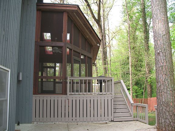 Home has a unique contemporary design that features vaulted ceilings, floor to ceiling windows, hardwood and tile flooring throughout. Kitchen features granite counters and new appliances, fireside family room with built-in book shelving, vaulted living room with custom floor to ceiling book shelves, private deck with screened porch and fenced yard, large two car garage with storage rooms. Neighborhood Description Martin's Landing is a swim and tennis community with three pools and 15 tennis courts. There are walking trails throughout the subdivision and surrounding the lake.