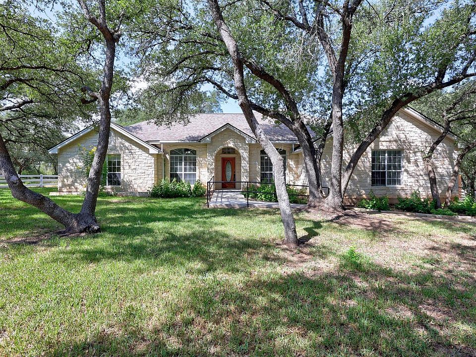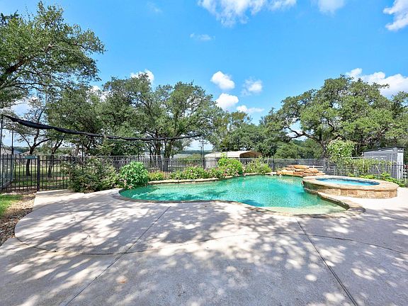 Quality-built Jimmy Jacobs custom home offering 3 bedrooms, 2 full bathrooms, and a dedicated study on a serene 1-acre lot shaded by mature trees. Backyard features a Crites in-ground pool with a diving rock, spa, Coolcrete deck, and landscaped surroundings. As you enter, you are greeted with wood flooring, high ceilings, and a view of the formal dining space and living room. The living room welcomes you with ample natural light, a stone to ceiling wood-burning fireplace, and high ceilings with crown molding. The kitchen features granite countertops, a center island, white cabinets, and a propane commercial cooktop with a vented commercial hood fan. Great in-law floor plan with the primary bedroom separate from the secondary bedrooms. The primary bedroom is large and it offers a nice view of the backyard. The primary bathroom features a dual vanity sink, walk-in shower, and two walk-in closets. Both of the secondary bedrooms are spacious and they both offer ceiling fans. Enjoy a large covered patio, oversized 2-car garage, sprinkler system, wrought iron fencing, and a storage building with carport. Convenient to shopping, healthcare, schools, and lake Georgetown. Ask to see the list of upgrades. Examples include fresh interior paint throughout, new carpet in the bedrooms, whole-home filtration system with a multi-layer filter and GAC vessel, updated electrical plugs and switches, and more. Schedule a tour today!