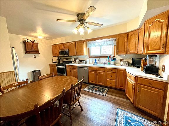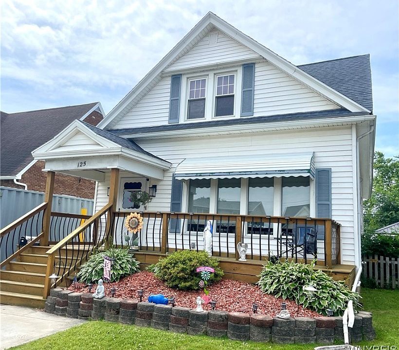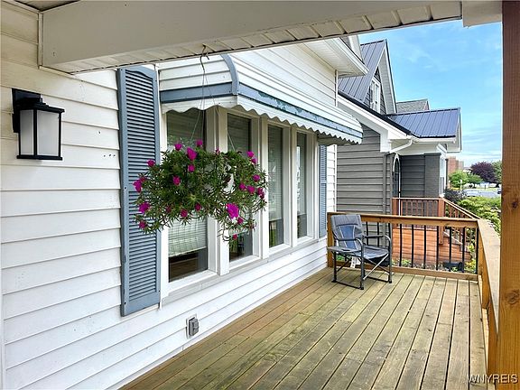 Demand South Buffalo Location within walking distance to many city conveniences including Restaurants, Schools, Coffee Shops and 2 Olmstead Parks. Downstairs features a large living and Dining room with hardwood floors and natural woodwork. Large eat in kitchen with Stainless Steel appliances included. Updated bathroom with whirlpool soaking tub. 2 first floor bdrms as well. Upstairs primary bedroom with walk in closet and plenty of room for sitting area to read or watch tv. 2nd upstairs bdrm with bump out also is very large. Lots of storage throughout. 2nd bathroom upstairs with a stand up shower. Great front porch. 2 car detached garage. Fully fenced yard. Furnace with central air. Full basement with glass block windows. Great value for the square footage.