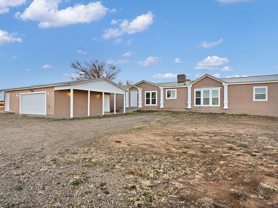 This nicely re-done manufactured home offers new windows, new butcher block counter tops, a large dining area and cozy office/study, and an oversized detached garage with a work space and room for storage. Located on ten acres this property offers lots of room for you and your animals.