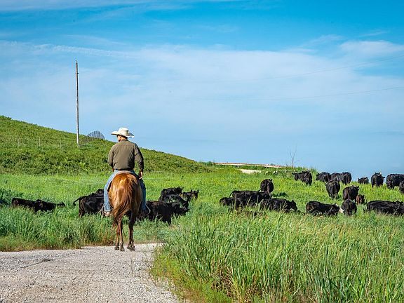 This ranch is being offered for sale, located approximately 8 miles southwest of Emporia Kansas on both sides of the Kansas Turnpike at the Historic Bazaar cattle pens. The ranch is home to 1,000+ momma cows with an impressive 10,364+\- contiguous deeded acres. There's 18 pastures all fenced well and all have ample water. In addition, there are 3 sets of corrals. The north facility, built by Blattner Feedlot Construction is less than a year old. The middle facility is right on the east side of the turnpike and the south set boasts a double rock loadout pictured many times through the years. All offer great access. The main residence is an impressive log home built in 1996 with logs imported from Colorado. The main floor boasts 3,089 sq ft of living space including a master with its own fireplace and en suite. The living area is open to the custom kitchen and the den is located just off the living area. There are 2 bedrooms upstairs with their own full bathrooms and another bedroom in the basement. The house comes fully furnished. Next to the house is a 4 stall barn with plenty of addition storage and a hay loft. The ranch is located in Kansas Deer management unit 14 and offer great whitetail deer hunting as well as turkey, quail, and other upland game hunting. There are 3 bigger ponds including one right behind the main residence that's about 18 acres. All of these and many others are stocked with bass, crappie, and channel catfish. Call Jeff at 3085209380 to see this ranch in person..