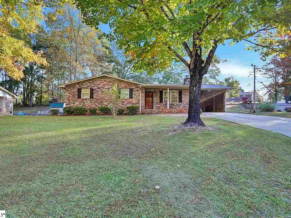 Updated! Great location! Inside Easley city limits and just off of the beating path away from all the hustle and bustle! Three bedroom, two full bath brick ranch with attached carport, situated on a private .46 lot in a well-established neighborhood. Walk in from the rocking chair front porch into the spacious Great Room that features beautiful floors, crown and base molding, detailed stone fireplace with gas logs and is open to the updated kitchen. The 10x12 white kitchen has all new lighting, hardware, cabinets with lazy Susan and island, granite countertops, pantry, updated flooring, and all new stainless-steel appliances which include a side-by-side refrigerator with indoor water and ice dispenser, standalone smooth top electric range and dishwasher. Master bedroom features fresh paint, hardwood floors, and an on-suite full bath. The two secondary bedrooms are large, freshly painted, and share an updated hall bathroom that has all new floors, toilet, vanity, mirror, and beadboard. The laundry room is located in the carport and has also been redone. The hot water heater has been replaced to gas from electric. 8x10 patio that is perfect for grilling out on. This home is near Hwy 123 and Hwy 8 making travel to Downtown Easley, Liberty, Clemson, and Greenville a breeze. Don't wait, give us a call today!