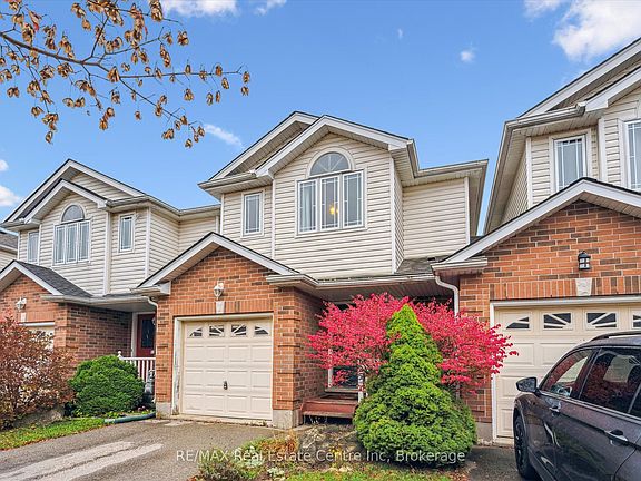 Bright and open home located on a direct bus route to the University of Guelph, and just steps from grocery stores and other major amenities. The main level offers an open concept layout with a spacious dining area, secure access to the garage, a two piece bathroom, and sliders leading to a private backyard. The second floor features a large primary bedroom with two walk in closets, along with two additional generously sized bedrooms. The finished basement includes a recreation room, laundry, and a three piece bathroom with an oversized custom egress window that opens in one motion. This home is ideal for first time buyers or as an income property. The fibreglass asphalt roof is approximately ten years old. Parking for three cars. Parks and trails right at your doorstep.