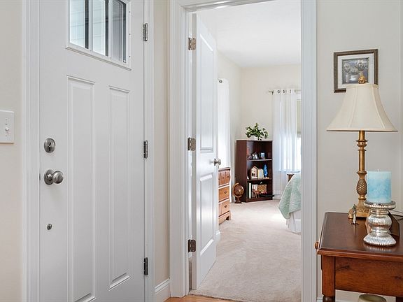 Don't miss the opportunity to make this gorgeous 2 bed, 2 bath, 1 level condo your new home! This stunning home offers an open concept floor plan flooded with natural light, gleaming hardwood floors, vaulted ceilings and windows treated with custom plantation shutters. The kitchen features beautiful soft close cabinetry, granite counter tops, tile back splash, under counter lighting and stainless steel appliances. Right off the kitchen is the mudroom/laundry/storage area with pull down stairs to the climate-controlled attic and access to the 2 car garage. The open dining / living room flows wonderfully into the multi-window sunroom w/slider to private patio and premium quiet back yard abutting a wooded conservation area. The primary suite is spacious, with windows overlooking the wooded back yard, walk-in closet and private bath with double vanity. The 2nd bedroom is the perfect spot for guests with ample space and access to the 2nd full bathroom. Better than new, must see!