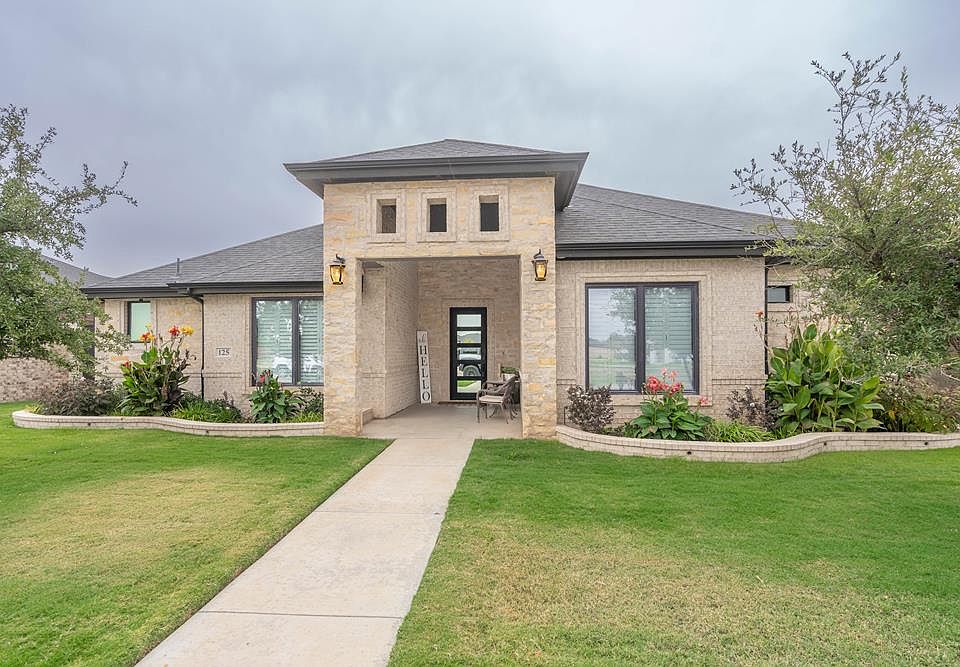 Be prepare to fall in love at the curb! Lush landscaping, large patio and elegant front door welcome you home. Inside, the foyer opens to and open concept living + dining + kitchen with two bedrooms on one side and a third bedroom on the other...an ideal layout. The living & dining areas feature sleek tile flooring throughout, adding both style and easy maintenance. The expansive primary suite includes beautiful ceilings, a freestanding tub and walk-in closet. Come tour this showstopper today!
