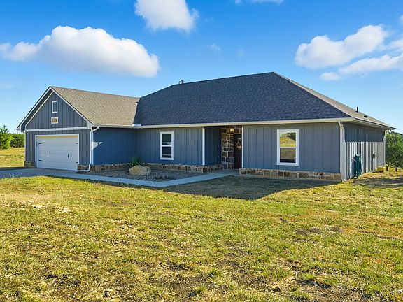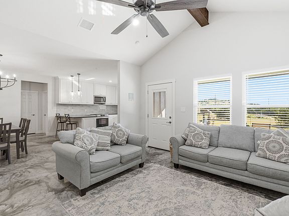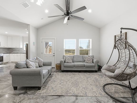 Open House, Sunday 2:00-4:00pm. Welcome to this 2023 custom built, modern farmhouse that boast 3 bedroom, 2 bathroom, and 1 office space, situated on 8.25 acres. This property features 2,107 sqft of living space with breathtaking stained concrete flooring throughout. Upon entering you will notice the high vaulted ceilings, open concept kitchen with built in appliances, granite countertops, and plenty of soft close cabinet space. The oversized living and dining area offers plenty of space for hosting or family gatherings. This split floor plan features an oversized master suite with an enormous walk in closet. The master bathroom offers a double headed shower, and two separate vanities with granite countertops. The two guest bedrooms over plenty of space with walk in closets. Outside you will notice the peaceful scenery with numerous mature oak trees. With no HOA, this property welcomes any and all livestock, outbuildings, mother in law suites, secondary residences... the list goes on. Horses are welcome!! The property features its own private water well, water softener, and aerobic septic. No water or sewer bill!! A property like this is rare to find!!