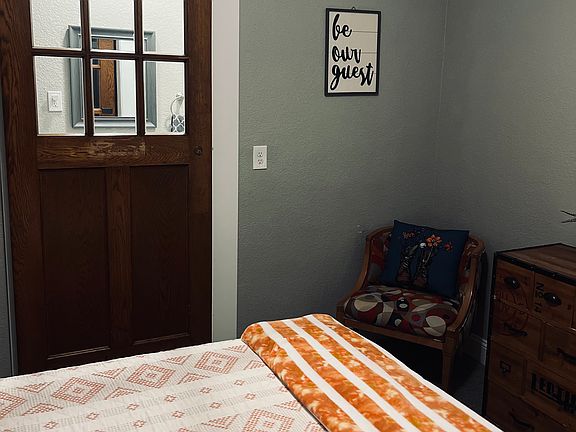 Bedroom includes a memory foam queen bed. There is a full kitchen. This unit is in the back of the house and has a shared driveway with the 2 bedroom unit attached to the front of the main house.