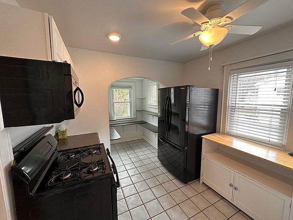 This 1940s American Traditional home has hardwood floors, an upgraded heating system, central air, a gas fireplace, a one-car garage with an automatic door, a large amount of walk-up attic space, washer and dryer, upgraded kitchen appliances, a fenced-in yard for pets, and enough driveway space for up to three cars.