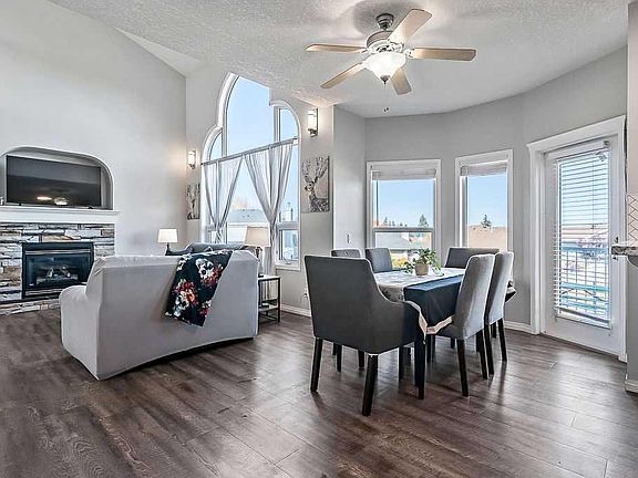 Beautiful Family Home on a Quiet Cul-de-Sac in Okotoks! Welcome to this stunning, fully finished home perfectly situated in a family-friendly cul-de-sac, tucked away from all the hustle and bustle of town. Sitting on an enormous pie lot, there’s plenty of room for the kids to play, entertain friends, or simply relax and enjoy the peaceful surroundings. As you arrive, a charming wrap-around veranda sets the tone for this warm and inviting property. Step inside to find large windows flooding the home with natural light, and tasteful updates throughout, including fresh paint and newer flooring. The main level features a bright, open living area that flows seamlessly into the kitchen complete with stainless steel appliances — perfect for family meals and gatherings. Upstairs, you’ll find a beautiful vaulted bonus room that’s open to below, creating a spacious, airy feel. The primary bedroom is thoughtfully tucked away at the back of the home for added privacy, featuring plenty of closet space and a luxurious 5-piece ensuite. Two additional bedrooms and a full bathroom complete the upper level. The fully finished lower level includes an office space that could easily be converted into a fifth bedroom, an additional bedroom, a 3-piece bathroom, and a large family room with walkout access to the perfectly manicured backyard. Additional highlights include in-floor heat, air conditioning, trendy soffit lights , and pride of ownership throughout. This is the perfect place to call home — a quiet retreat with space to grow, play, and make memories in one of Okotoks’ most welcoming neighbourhoods.