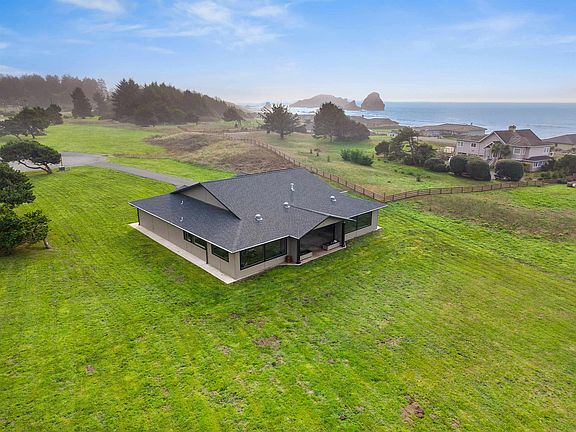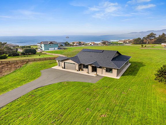 Coastal Luxury, Privacy & Nearly 2 Acres of Oceanview Living. This beautifully furnished, move-in ready coastal home is located in The Beach Subdivision, an exclusive gated community with private beach access just minutes from the Oregon border. The property offers two bedrooms with an office that can easily be converted into a third bedroom, two and a half baths, with two walk in showers, and 2,444 square feet of single level living on 1.89 acres of ocean view land. The home features an open concept layout with a Board and batten oversized fireplace with stone hearth, quartz countertops, custom cabinetry with pull out drawers, high end appliances, a farmhouse sink facing ocean views, and a walk in pantry. The oversized coastal grade windows provide stunning views. The home includes an indoor fire sprinkler system, a paid off solar system, a tankless water heater, and a laundry and mudroom with washer and dryer included. The enclosed patio offers year round comfort with overhead heaters, lighting, and the patio furniture conveys. A concrete pad surrounds the home for easy access and outdoor enjoyment. The oversized two car garage includes an attached workshop or storage area and the riding mower with trailer is included. There is a second electrical panel ready for a future jacuzzi or sauna. This nearly two acre property also allows for the addition of an ADU if desired. With an HOA fee of only sixty five dollars a month, impeccable upkeep and private gated access, this oceanview home is an exceptional value and an incredible opportunity. Properties like this rarely become available. Schedule your private viewing today. Check out the virtual walkthrough and drone tour!