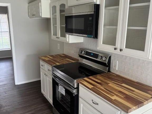 New flooringFormal dining roomCeiling fansStainless appliancesWood block countersCovered patioEat in kitchen space