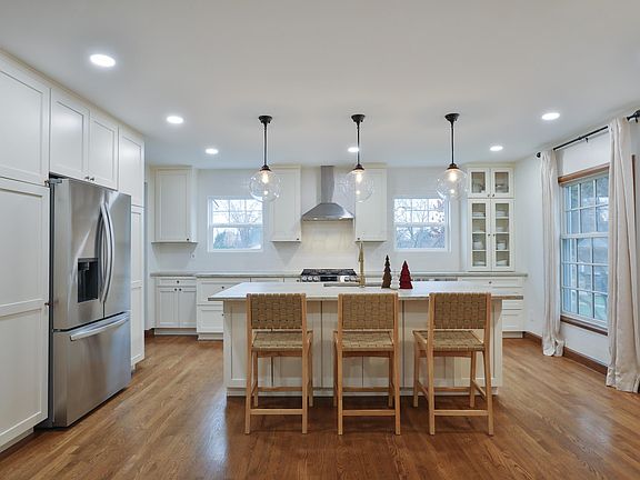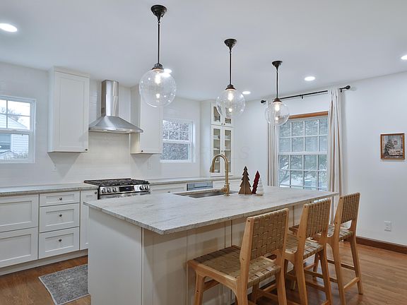This beautifully updated residence in the highly desirable Clintonville area has everything you've ever wished for and more! The first floor showcases gleaming hardwood flooring and original architectural details, including a wood-burning fireplace and built-in features, complemented by modern enhancements. The remodeled eat-in kitchen boasts quartz countertops, 42-inch cabinets, stainless steel appliances, and a spacious island with ample storage, a large sink, and seating for three. Flowing into the kitchen, the open living room features a wood-burning fireplace with its original mantel, recessed lighting, and an abundance of natural light. The full hall bath includes a tub-shower combo with a tile surround, new tile flooring, and a double vanity providing plenty of storage. The primary suite offers a cozy reading room, a custom walk-in closet with extensive built-ins, and a generous full bathroom featuring a frameless glass rain shower that is also a steam bath and double vanity. The first floor also includes two additional bedrooms and a sunroom/breezeway adorned with original tile flooring. Upstairs, you'll find a private fourth bedroom complete with its own half bathroom and a walk-in closet. The finished lower level features a recreation room and a built-in bar with a liquor cabinet. Outside, relax in the expansive fenced-in yard set on 1.5 lots, featuring a charming brick patio. This home is brimming with wonderful features that truly must be seen to be appreciated!