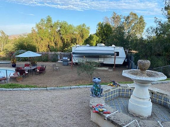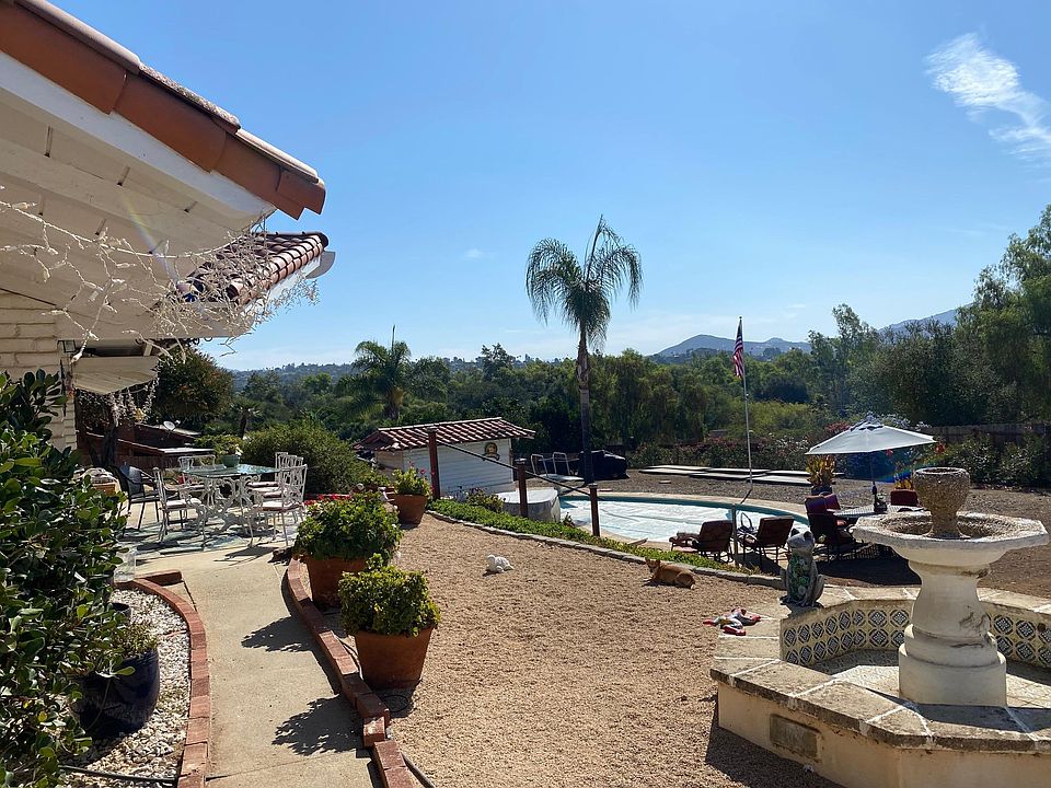 Custom adobe home on 1/2 acre. Quiet, safe neighborhood with a rural feel - on cul-de-sac with magnificent view of park & mountains. Fenced yard for children or pets. Walk to best schools in Escondido. Tile floors with easy-care flooring in bedrooms. 4 parking spaces with extra parking for boat or RV. Minutes to Kit Carson Park (walking, jogging, biking, tennis, playgrounds, picnicking, skateboard Park, roller hockey, baseball, softball, soccer). Close to I-15 just north of Rancho Bernardo with easy access to downtown. Zoned heat pumps in each room for air conditioning and heat. Dual pane windows throughout 16'x32' Pool with solar heating - up to 90degF. 2 fireplaces, Beam ceilings, full patio. Picture window in the dining room, three dual pane sliding glass doors capture a view of park & mountains.