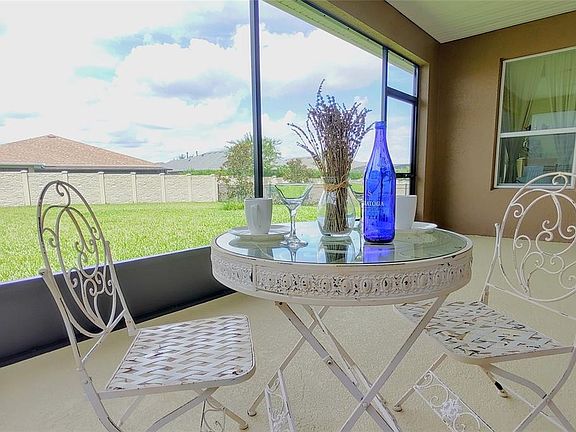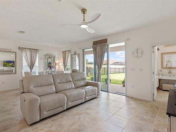 Live the luxury resort lifestyle at sought-after Trilogy, a vibrant 55+ active-adult gated community, in this inviting, well-designed 3-bed/2-bath move-in ready home, featuring an open-concept and neutral color scheme, creating a versatile backdrop to complement any decor. This light and bright 2020 Affirm model, meticulously maintained by its original owner, boasts a smart, efficient layout designed for modern living with nearly 1,700 sq. ft. of comfortable living space. The spacious main living area boasts a sleek kitchen, featuring a massive island and breakfast bar with stunning granite countertops and additional storage space below, elegant cherry wood cabinetry with under-mount accent lighting, detailed molding, pantry, stainless steel appliance package, offering a generous gathering space for your culinary creativity to flourish. This amazing kitchen flows into the open dining room and Great Room with abundant natural lighting, offering flexibility for hosting guests or enjoying day-to-day life in comfort, and overlooking the brand-new screen-enclosed lanai accessible through the large glass sliders for outdoor living or dining al fresco. Enjoy views of the spacious, fenced and level backyard, perfect as a playground for your pets or ample space for your future pool. The private, tranquil primary bedroom suite is a true retreat, with views of a starry backyard at night, and a roomy en-suite bathroom featuring dual granite vanities, glass-enclosed shower, private water closet, and a large walk-in closet. The centrally located second bedroom and the third bedroom with new sliding barn door share the main hallway and adjacent full bathroom with tub. The interior laundry room adjacent to the kitchen includes washer and dryer. The home also features a versatile 2-Car garage including a 6x7 storage nook and energy-efficient gas water heater. The exterior features an irrigation system, rain gutters, lush St. Augustine lawn, stately brick-paved driveway, fenced backyard and rear concrete block privacy wall, and newly installed lanai screen enclosure in August 2025. One of the many notable advantages of living in Trilogy is having access to the exceptional 57,000-square-foot community clubhouse, offering an impressive array of amenities and activities. Enjoy delicious meals at the on-site restaurant and bar. The clubhouse membership includes state-of-the-art fitness center, an indoor/outdoor community pool, hot tubs, tennis courts, basketball court, boccie ball area, golf simulator, poker/billiard room, a demonstration kitchen and art studio. The community also offers yoga, Ballroom/Latin dance classes, etc. The monthly HOA fee includes Spectrum Internet/Cable and phone (landline), home security services, landscape services, along with the maintenance of the common amenities and recreational facilities. Trilogy is conveniently located just North of Clermont, only minutes to the turnpike entrance, an easy drive to Disney, and adjacent to the renown Lakeridge Winery. This is the opportunity you've been waiting for, and now more accessible at the reduced price! Select furnishings and decor are negotiable.