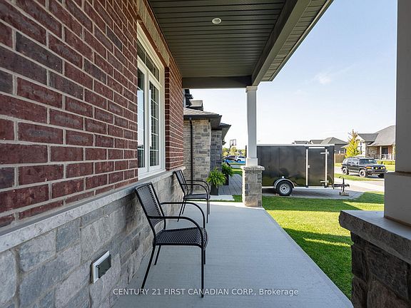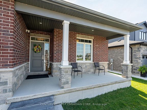 Welcome to 125 Spencer Ave, located in the sought-after Olde Clover community in Lucan, this beautifully maintained bungalow offers the perfect balance of modern comfort and small-town charm. With 3 bedrooms and 2 bathrooms, this home is thoughtfully designed to suit a variety of lifestyles. Situated on a premium 59' x 139' lot, the property features a spacious backyard an ideal canvas for your dream outdoor oasis and even large enough to accommodate a pool. From the moment you arrive, you'll notice the welcoming covered front porch, covered back deck perfect for relaxing or entertaining, and the oversized double-car garage providing plenty of room for vehicles and storage. Step inside to an open, airy layout filled with natural light and stylish finishes throughout. The great room offers a corner gas fireplace and connects effortlessly to the bright dining area, complete with a large sliding door leading out to the backyard.. The designer kitchen stands out with its ceiling-height cabinetry, quartz countertops, large island, full pantry, and stainless steel appliances offering both function and sophistication. The primary bedroom is a relaxing retreat, complete with a generous walk-in closet and a luxurious 4-piece ensuite with a glass shower. Two additional bedrooms and a full bathroom provide comfortable accommodations for family or guests. The basement is partially finished, offering endless potential to customize as a home gym, media room, or extra living space, with 3 piece bathroom rough in and and two cold cellars, perfect for storage and seasonal needs. Located in a vibrant, family-friendly neighborhood just 15 minutes north of London, this move-in-ready home checks all the boxes for comfort and style. Plus, you'll love being steps from green spaces featuring basketball, tennis, and pickleball courts, perfect for enjoying an active, outdoor lifestyle.