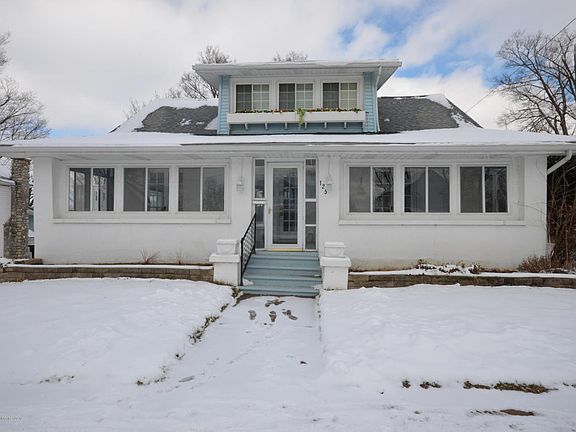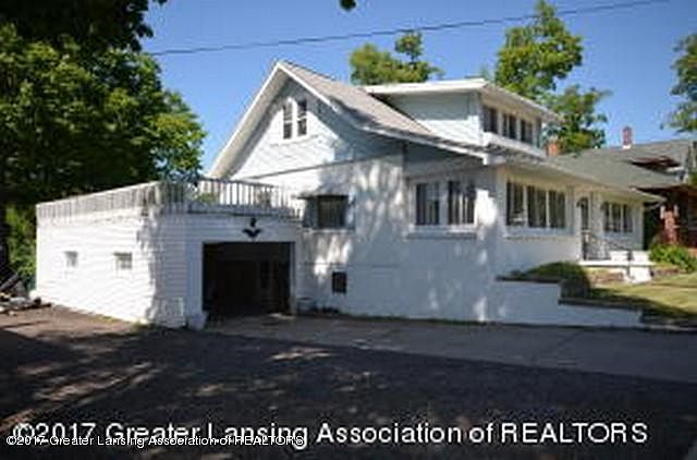 Stately 2-story on the ''beautiful Grand river'' in charming Eaton Rapids, originally owned by a local business man, this home has been one of the prominent homes in town. As you drive across the State St. bridge, you notice the character of the cement block construction along the expansive porch that covers the south side of the house in windows. The flower boxes and the deck above the tandem 2 car garage grab your attention. As you enter the gorgeous foyer hardwood floors, rich wood trim and custom built cabinets make a statement. The spacious living room features a gas fireplace with the surround between 2 windows with views of the beautiful backyard.