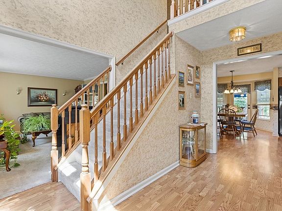 Vacation at home! Ultimate backyard paradise - 28x16 semi-inground pool, charming Tiki hut bar, various sitting areas, 18x16 deck w/canvas awning and a beautiful back yard for summertime enjoyment! Inside this well-maintained home you'll find an ideal layout featuring a two-story open foyer, spacious living and dining rooms accented with crown moldings. Renovated kitchen includes a center island, pantry, all appliances, dinette with bay window - all open to the family room with a stone fireplace and French doors opening to the living room. Convenient 1st floor laundry too. Generously sized bedrooms with abundant closet space including a large master suite with tray ceiling, walk-in closet and full bath with double vanity. Entertain in the nicely finished game room with new carpeting on the lower level. Ample parking in the concrete driveway leading to a 2 car rear garage. Wonderful sidewalk neighborhood, close to the Montour Trail, you'll love the sense of community!