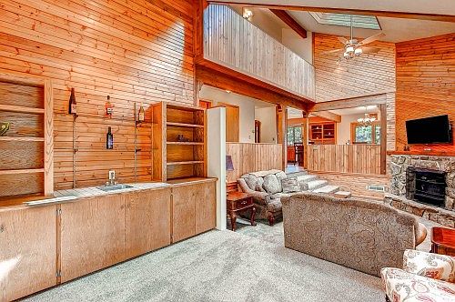 This is all about location, great home with southern exposure in sought after neighborhood, close to all amenities & updated throughout. Cozy up in huge passive solar sun room w/floor to ceiling glass & gorgeous new tiled flooring providing a great bonus living area. The main level boasts a great room truly deserving of the name featuring knotty pine walls, vaulted ceilings, stone surround wood burning fireplace, new carpet, wet bar, plenty of natural lighting with skylights & windows. The cooks delight kitchen includes newly finished hardwood flooring, 5 burner gas cook top, tile back splash, double ovens, breakfast bar and eating area. All appliances stay in this wonderful kitchen and the walk out to the rear deck provides ample room for cook outs or simply relaxing. Main level bedroom is a plus as is the remodeled full bathroom. The master suite is a great destination after a long day of work or play- a huge sitting area with an outdoor balcony to bring the outdoors in is amazing, wood burning fireplace, vaulted ceilings and adjoining 5pc bath and walk in closet. A secondary bedroom with two closets and remodeled full bath completes this upper level. The finished garden level basement provides a large recreation room perfect or a TV viewing area and a 3 bath. This home truly has it all. Pride of ownership abounds throughout, minutes from shopping, hiking and schools. Price has been improved, was $394,000 now $384,000 on 6/27/2016. New construction in the neighborhood is a retirement community.