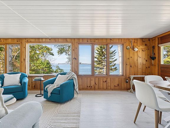 Affectionately named The Perch by the current owners for its front-lawn view of bald eagles, blue herons, and other wildlife, this cozy waterfront retreat sits on a quiet cove at the end of a dead-end road with wide-open views. A generous lawn leads to stairs down to the pebble beach - at high tide, it's ideal for swimming or launching kayaks and canoes, while at low tide, tidal pools invite exploration.