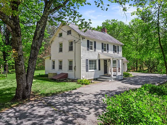 Storybook 1800s farmhouse on over 3 acres of spectacular, picturesque treed land, with Cole Brook creek nearby! Filled with unique spaces and charm. Original wide plank flooring, crown molding, and a farmhouse style eat-in kitchen, with separate walk-in pantry. Granite countertops and custom kitchen table to match, GE appliances, and a gas range with hood. 1.5 baths on the 1st floor, full bath & an oversized walk in closet on 2nd floor. Forced hot air heating system and central air. Circular driveway, spacious concrete patio with pizza oven, pole barn, pump system for gardening, and an area for crafting maple syrup. Use the renovated 2nd garage bay for a laundry room/mud room, or create a first floor primary suite. Minutes to downtown Saratoga, Wilton shopping, and I-87!