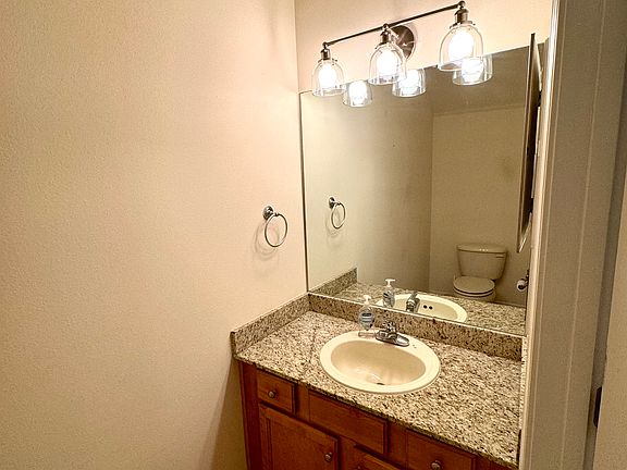 Lovely private floor plan with lots of natural light: all bedrooms are upstairs with two full bathrooms and full-size washer / dryer upstairs as well. Large walk-in closets in bedrooms. Granite counters throughout, new stainless steel appliances, new AC, convenience half bath downstairs, attached garage with interior access into hallway. Sleeper sofa in living room for additional guests. LG 65 smart TV in living room