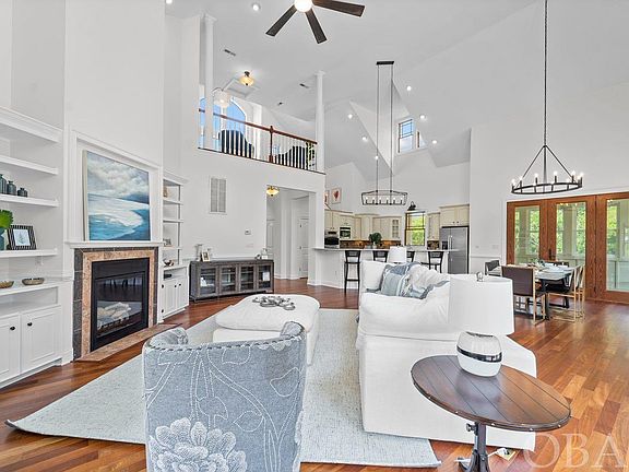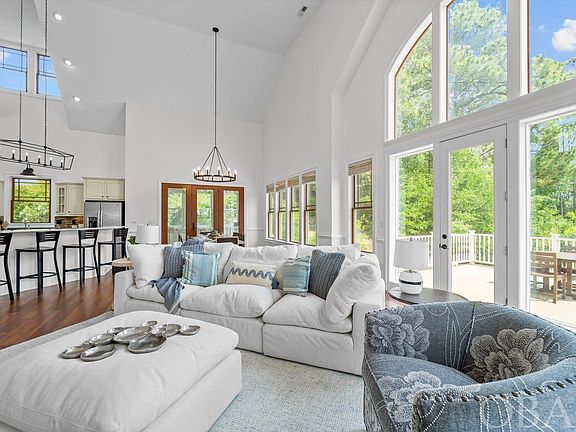 Serenity at its finest! Welcome to your private wooded oasis with trees as far as the eye can see. This open and spacious, custom home provides an abundance of windows, so the beauty of the outdoors can be appreciated from every room of the home. The grand, two-story foyer showcases the attention to detail that can be found throughout. Recently refreshed and in nearly new condition, this home offers 5 bedrooms, 4 ½ baths, three fireplaces, oversized living room with soaring ceilings and custom fireplace, refinished Brazilian Cherry floors, formal dining room, four seasons room, gourmet kitchen with two islands and newly installed quartz countertops with custom backsplash, custom cabinetry, and chef inspired appliances, with new gas cooktop and downdraft. The primary suite is located on the main level and features a fireplace, private deck, large walk-in closet, and luxury ensuite with separate tub and shower. The main level also features a powder room, oversized laundry room, guest room with fireplace, which could also be used as an office. Venture upstairs to an open loft area, two secondary bedrooms with baths, recreation room and private guest suite complete with sitting area, full bath and 2 closets. Entertain and enjoy the coastal breezes with multiple outdoor spaces. Relax on the newly constructed raised deck and rear stone patio or enjoy a cup of coffee on the wrap around covered porch. The oversized 2 car garage offers ample space for your vehicles and storage needs. The home has been recently upgraded and refreshed to include a new roof, new paint, refinished hardwood flooring, new carpet, new kitchen countertops and custom backsplash, enlarged rear deck, stone patio and select lighting. Don’t miss this opportunity to own a beautiful custom home in the waterfront community of Carlyle on the Sound. Carlyle on the Sound emphasizes the need to preserve the natural foliage of the Outer Banks with 45% of the neighborhood being preserved as open space! The community also offers sound access to watch the beautiful sunsets over the Albemarle Sound! Feel as if you are worlds away with only being a short drive to all the Outer Banks has to offer. Perfect as a year-round or second home, this opportunity won’t last long.