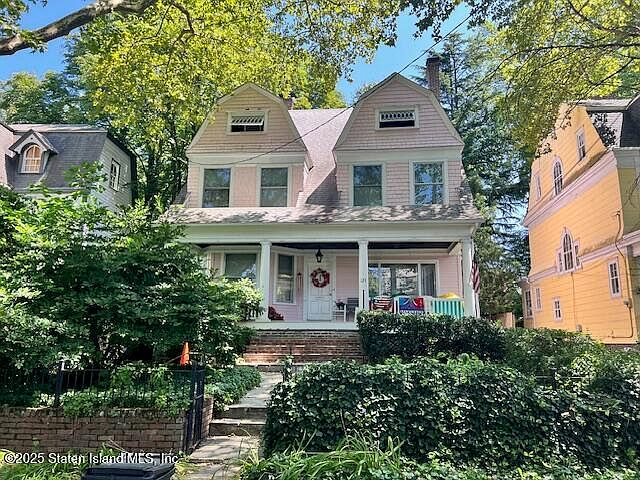For Sale - One Block from Beautiful Snug Harbor. Discover old-world charm with an open porch, welcoming vestibule, and a huge living room with Alcove bar-perfect for entertaining. Features include a formal dining room, two stunning wood staircases, a primary suite with jacuzzi bath, and a 4th bedroom with full bath on the third floor. Set on lovely grounds just steps from Snug Harbor.