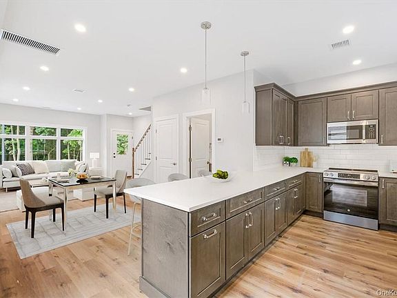 Modern Townhouse for Rent - New Construction, Pataki Farm Section of Peekskill. Welcome to this newly constructed 1,200 sq. ft. townhouse offering modern comfort & convenience. With two floors of well-designed living space, this home is move-in ready! The open, first-floor layout features a bright living & dining area, a galley kitchen with peninsula and energy-efficient appliances (refrigerator, stove, & dishwasher), half bath, and door leading to a rear deck, perfect for outdoor relaxation. Upstairs, there are two spacious bedrooms with ample closet space & a full bath. The home includes a 1-car garage, additional parking space, & visitor parking. Stay comfortable year-round with Central Air & Electric Heat Pump. A partial basement provides extra storage or flex space. Prime location: close to highways, Metro North Train to NYC, shopping centers, downtown Peekskill & Hudson Riverfront. Make this townhouse your new home. Additional Information: ParkingFeatures:1 Car Attached,