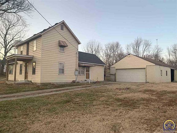 Enjoy small town living in the beautiful Flint Hills. Easy commute to Topeka, Manhattan, or Junction City. This home features a large living room, roomy Master bedroom, 1.5 bath, kitchen/dining area , laundry and 2nd bedroom on main floor. Upstairs you will find 2 rooms that have been gutted and ready to be finished. New hvac system, fenced in back yard, detached double car garage on a 159 x 119 lot. Call today for your showing.