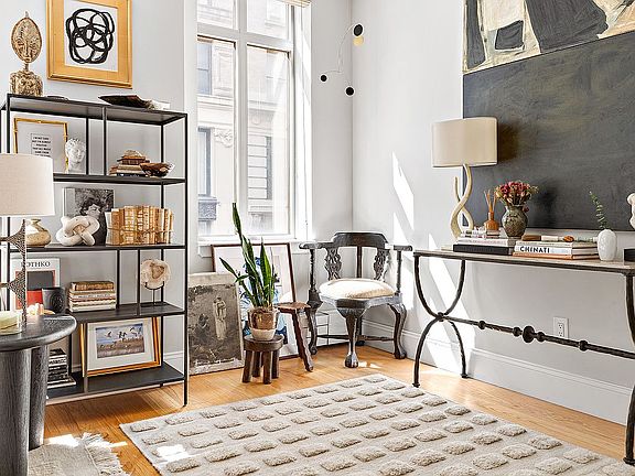 Enter the home through the closet-adorned entryway that flows directly into an expansive open concept living and dining area. The large south facing windows allow for continuous light throughout the day into the gorgeous loft-like space. This smart layout also features oak floors, a new Bosch washer dryer, a beautiful powder room and ample storage. The renovated kitchen features new cabinetry with chic bronze accents, a wine fridge and a suite of high-end stainless-steel appliances from Bosch and Sub Zero.